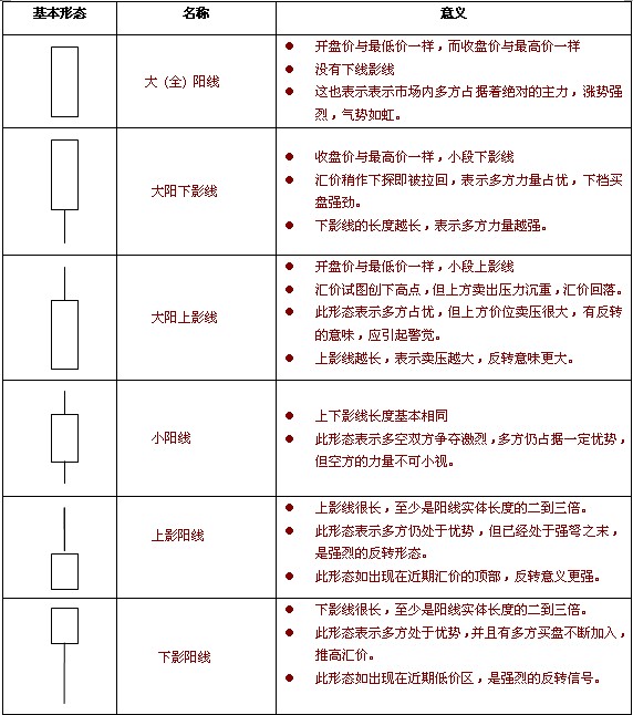 a) 阳线基本形态分析